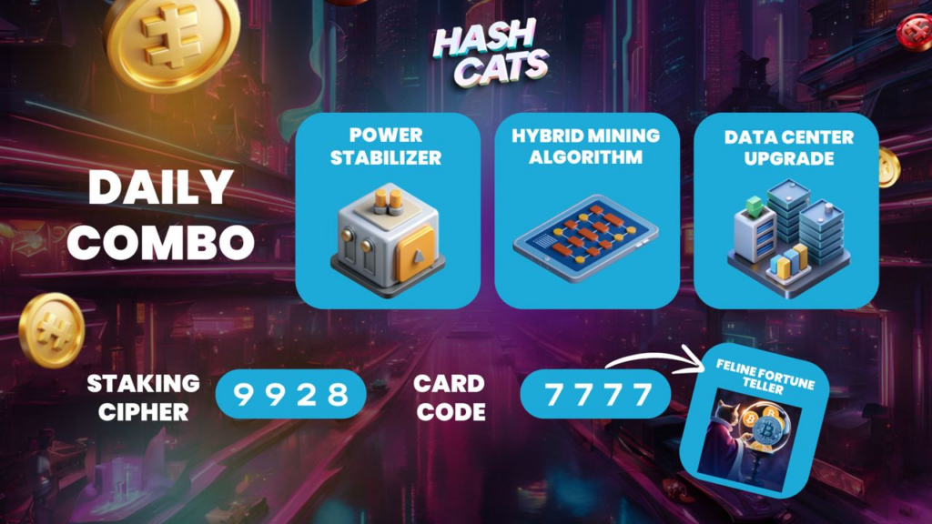 There are two ways to earn extra rewards with the HashCats daily combo. The first way is to enter a specific number, also known as the cipher, when you’re staking HASH points.